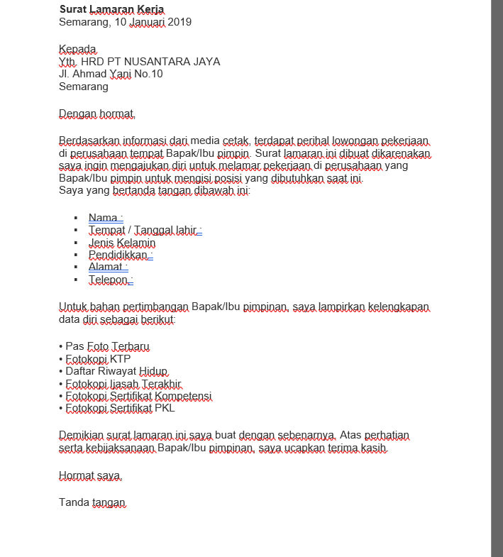 Kumpulan contoh surat lamaran kerja terbaru 2020.